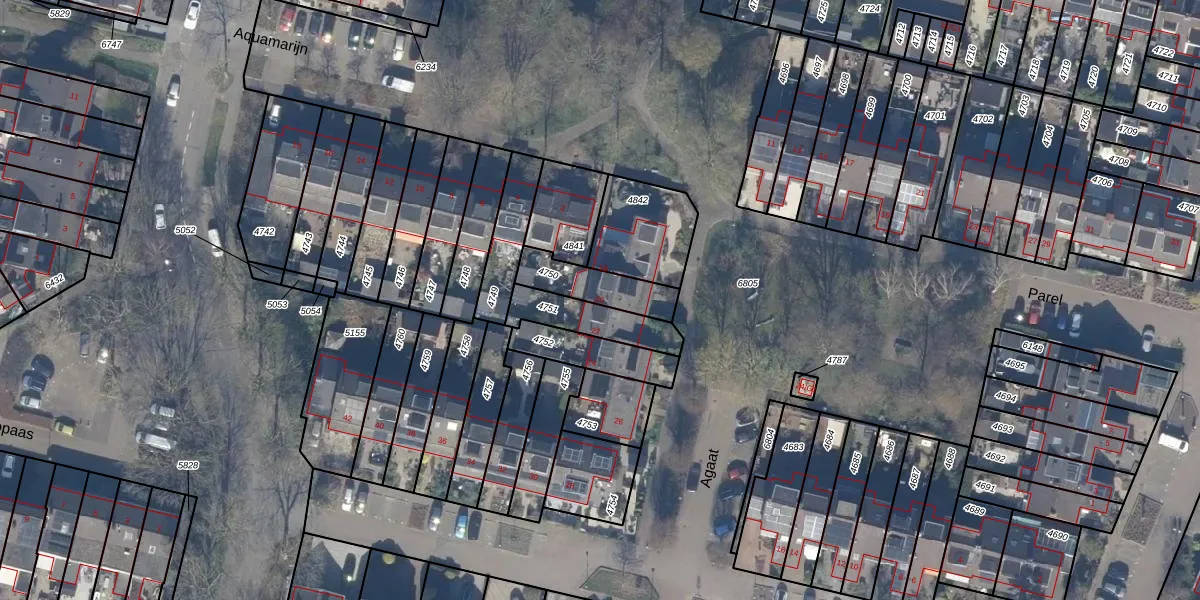 Gebruik de zoekbalk of klik op een perceel voor informatie over de adressen binnen dit perceel.