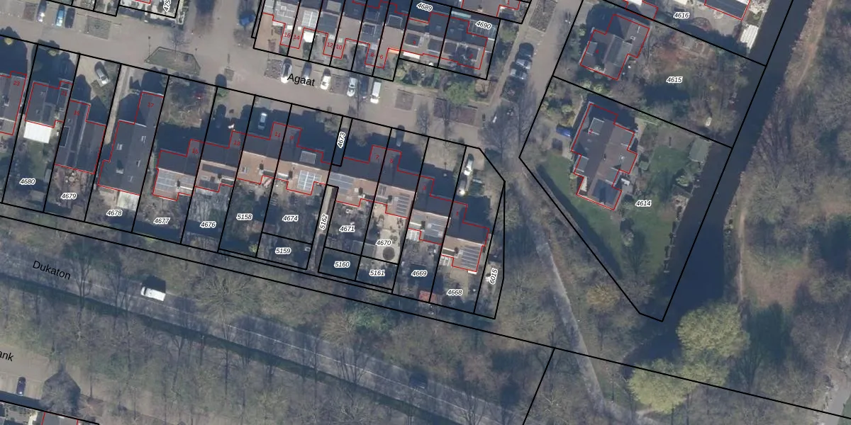 Gebruik de zoekbalk of klik op een perceel voor informatie over de adressen binnen dit perceel.