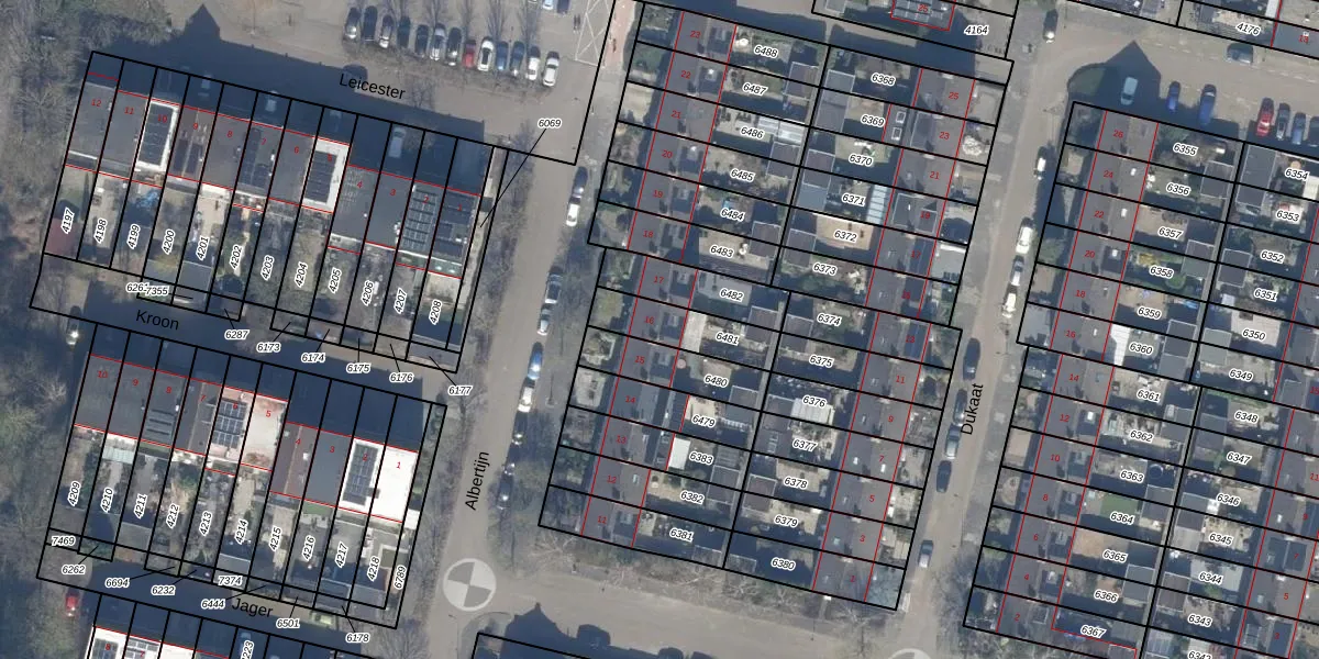 Gebruik de zoekbalk of klik op een perceel voor informatie over de adressen binnen dit perceel.