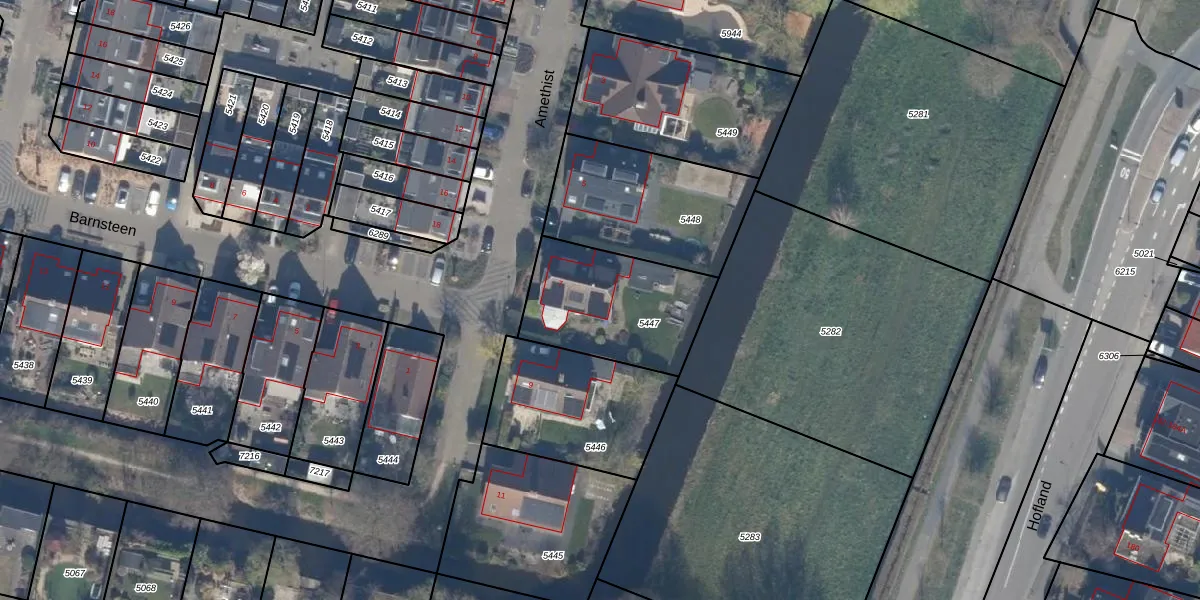 Het perceel waarop Amethist 7 staat heeft een oppervlakte van 508 m². Dit is een groot perceel. De perceeloppervlakte wordt geregistreerd door het Kadaster. Gedetailleerde informatie over de maten van dit perceel kunt u vinden in het rapport Kadastrale kaart met maatvoering van Amethist 7.