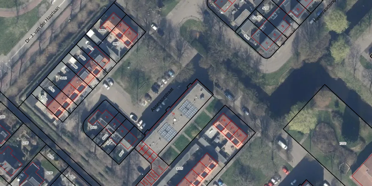 Het perceel waarop Assessorstraat 1-G1 staat heeft een oppervlakte van 2143 m². Dit is een zeer groot perceel. De perceeloppervlakte wordt geregistreerd door het Kadaster. Gedetailleerde informatie over de maten van dit perceel kunt u vinden in het rapport Kadastrale kaart met maatvoering van Assessorstraat 1-G1.