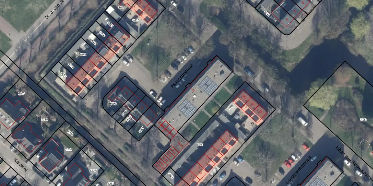 Het perceel waarop Assessorstraat 19 staat heeft een oppervlakte van 2143 m². Dit is een zeer groot perceel. De perceeloppervlakte wordt geregistreerd door het Kadaster. Gedetailleerde informatie over de maten van dit perceel kunt u vinden in het rapport Kadastrale kaart met maatvoering van Assessorstraat 19.
