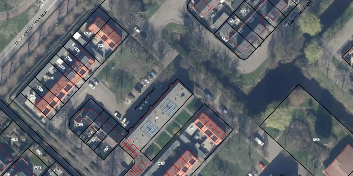 Het perceel waarop Assessorstraat 3 staat heeft een oppervlakte van 2143 m². Dit is een zeer groot perceel. De perceeloppervlakte wordt geregistreerd door het Kadaster. Gedetailleerde informatie over de maten van dit perceel kunt u vinden in het rapport Kadastrale kaart met maatvoering van Assessorstraat 3.