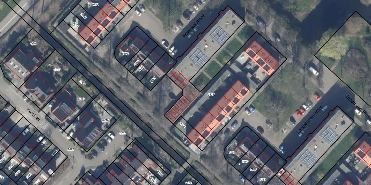 Het perceel waarop Assessorstraat 35-G5 staat heeft een oppervlakte van 2143 m². Dit is een zeer groot perceel. De perceeloppervlakte wordt geregistreerd door het Kadaster. Gedetailleerde informatie over de maten van dit perceel kunt u vinden in het rapport Kadastrale kaart met maatvoering van Assessorstraat 35-G5.