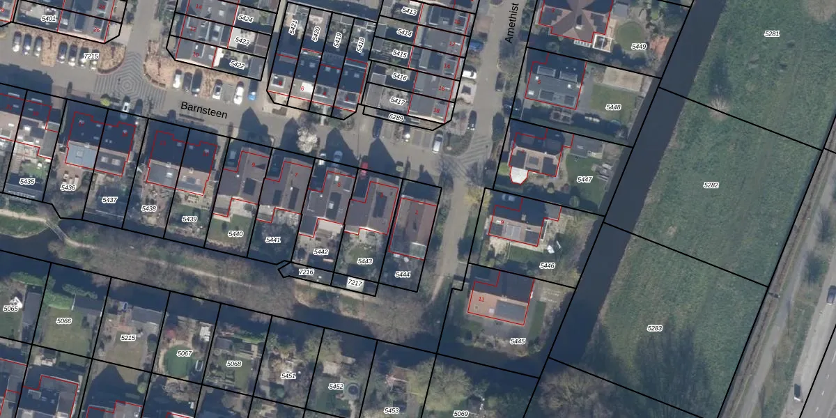Het perceel waarop Barnsteen 1 staat heeft een oppervlakte van 243 m². Dit is een middelgroot perceel. De perceeloppervlakte wordt geregistreerd door het Kadaster. Gedetailleerde informatie over de maten van dit perceel kunt u vinden in het rapport Kadastrale kaart met maatvoering van Barnsteen 1.