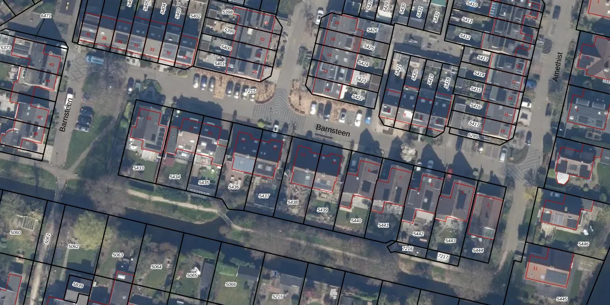 Het perceel waarop Barnsteen 13 staat heeft een oppervlakte van 271 m². Dit is een middelgroot perceel. De perceeloppervlakte wordt geregistreerd door het Kadaster. Gedetailleerde informatie over de maten van dit perceel kunt u vinden in het rapport Kadastrale kaart met maatvoering van Barnsteen 13.