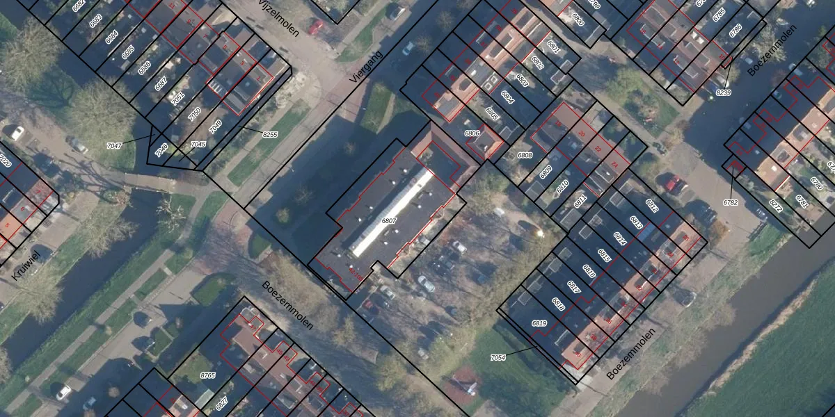 Het perceel waarop Boezemmolen 96 staat heeft een oppervlakte van 865 m². Dit is een groot perceel. De perceeloppervlakte wordt geregistreerd door het Kadaster. Gedetailleerde informatie over de maten van dit perceel kunt u vinden in het rapport Kadastrale kaart met maatvoering van Boezemmolen 96.