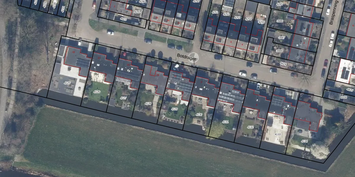 Het perceel waarop Botdrager 11 staat heeft een oppervlakte van 533 m². Dit is een groot perceel. De perceeloppervlakte wordt geregistreerd door het Kadaster. Gedetailleerde informatie over de maten van dit perceel kunt u vinden in het rapport Kadastrale kaart met maatvoering van Botdrager 11.