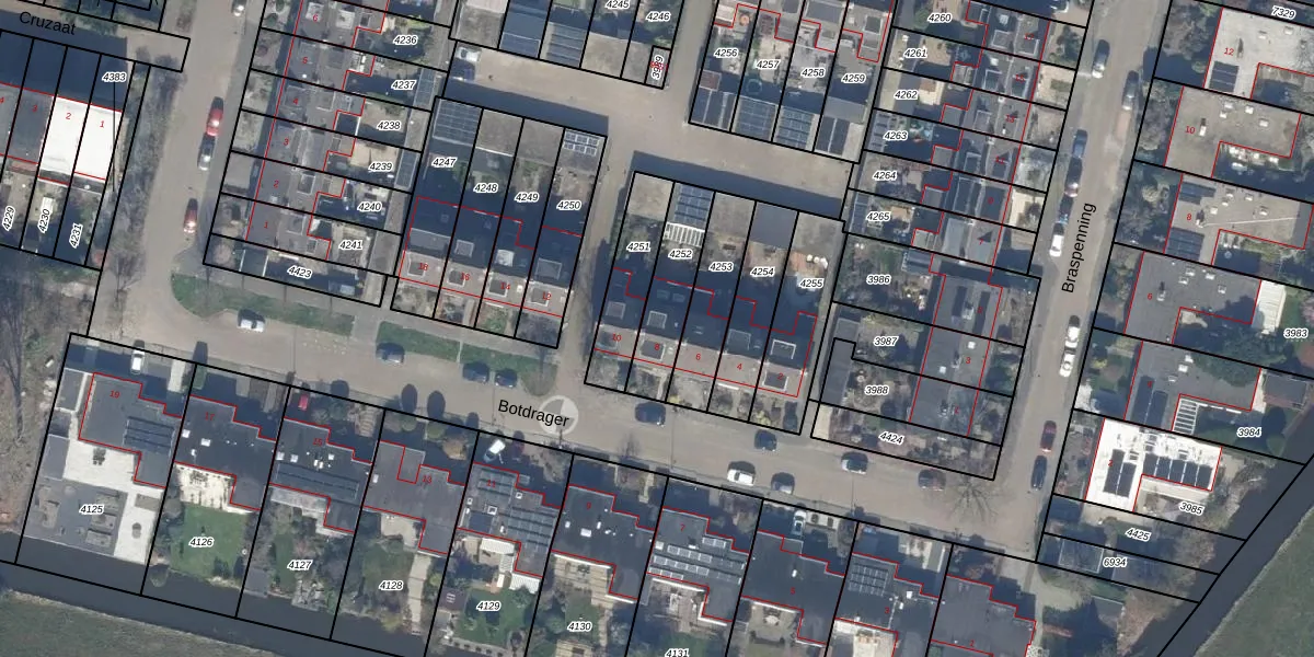 Gebruik de zoekbalk of klik op een perceel voor informatie over de adressen binnen dit perceel.