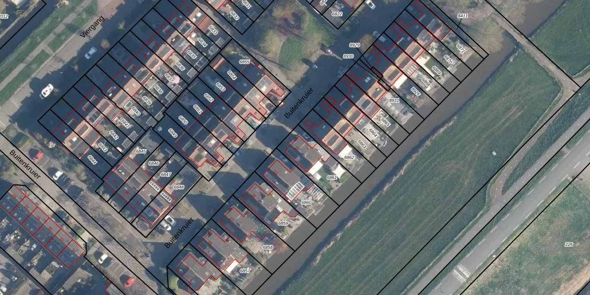 Het perceel waarop Buitenkruier 21 staat heeft een oppervlakte van 318 m². Dit is een groot perceel. De perceeloppervlakte wordt geregistreerd door het Kadaster. Gedetailleerde informatie over de maten van dit perceel kunt u vinden in het rapport Kadastrale kaart met maatvoering van Buitenkruier 21.