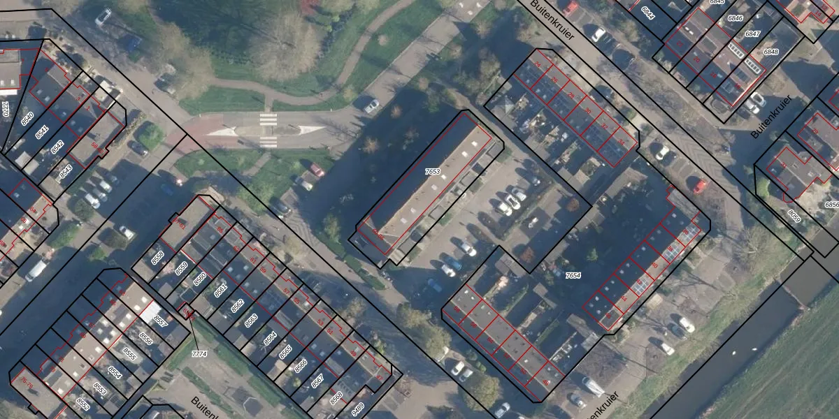 Buitenkruier 64 is gelegen op kadastraal perceel MDT01C7653. Deze kadastrale aanduiding is uniek en wordt gebruikt door het Kadaster om eigendomsrechten en andere zakelijke rechten vast te leggen. Het perceel maakt onderdeel uit van de kadastrale gemeente Mijdrecht.