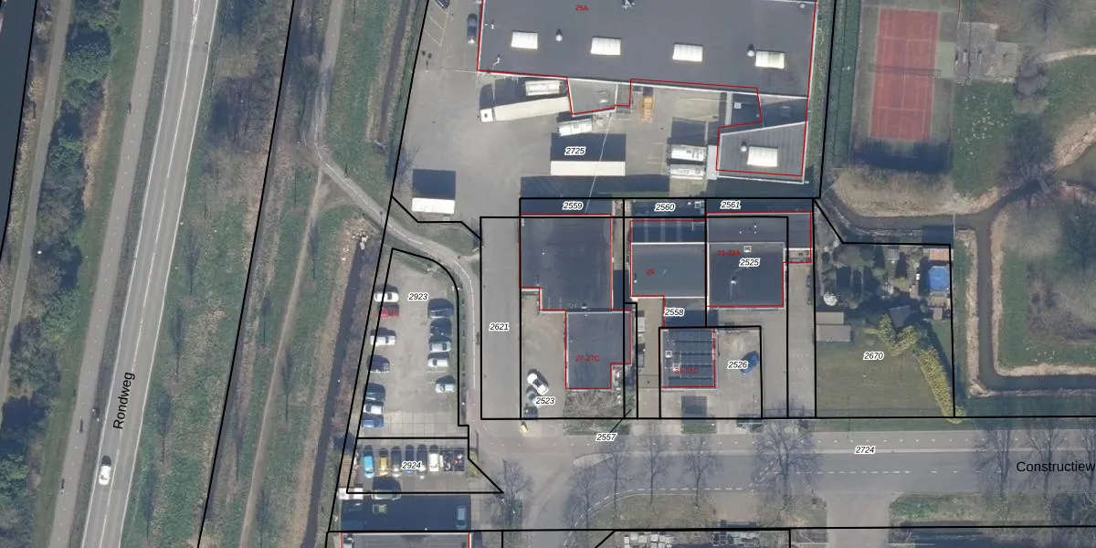 Het perceel waarop Constructieweg 27-B staat heeft een oppervlakte van 700 m². Dit is een groot perceel. De perceeloppervlakte wordt geregistreerd door het Kadaster. Gedetailleerde informatie over de maten van dit perceel kunt u vinden in het rapport Kadastrale kaart met maatvoering van Constructieweg 27-B.