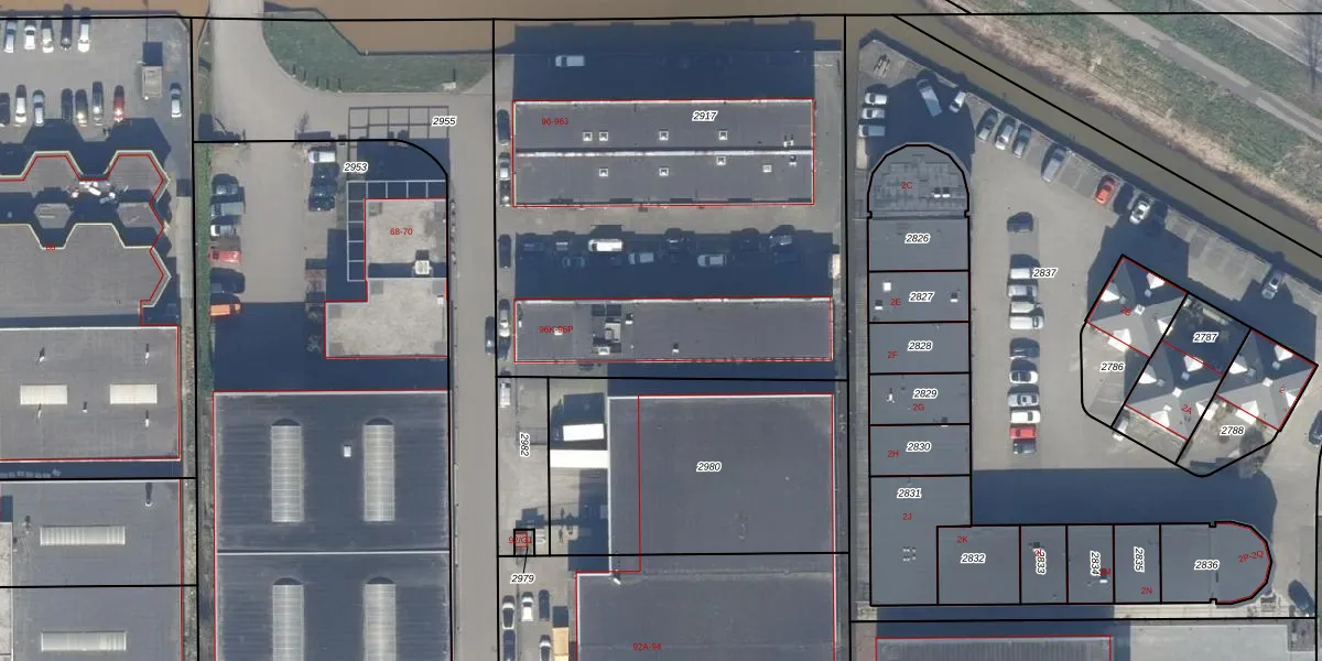 Het perceel waarop Constructieweg 96-M staat heeft een oppervlakte van 2920 m². Dit is een zeer groot perceel. De perceeloppervlakte wordt geregistreerd door het Kadaster. Gedetailleerde informatie over de maten van dit perceel kunt u vinden in het rapport Kadastrale kaart met maatvoering van Constructieweg 96-M.