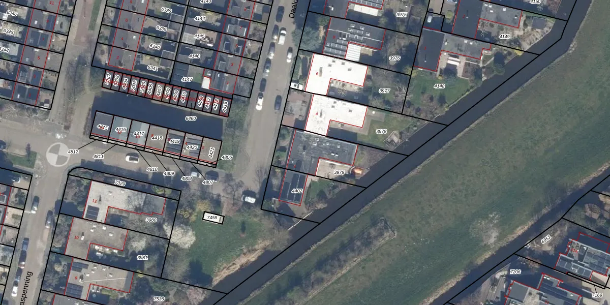 Het perceel waarop Daalder 2 staat heeft een oppervlakte van 491 m². Dit is een groot perceel. De perceeloppervlakte wordt geregistreerd door het Kadaster. Gedetailleerde informatie over de maten van dit perceel kunt u vinden in het rapport Kadastrale kaart met maatvoering van Daalder 2.