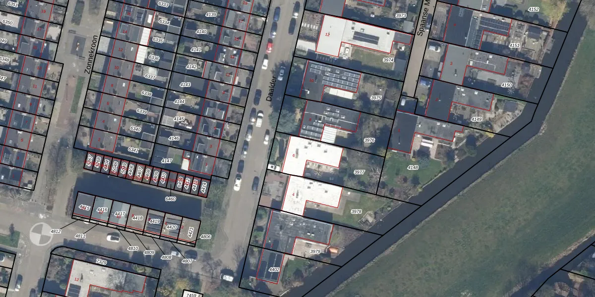 Het perceel waarop Daalder 6 staat heeft een oppervlakte van 492 m². Dit is een groot perceel. De perceeloppervlakte wordt geregistreerd door het Kadaster. Gedetailleerde informatie over de maten van dit perceel kunt u vinden in het rapport Kadastrale kaart met maatvoering van Daalder 6.