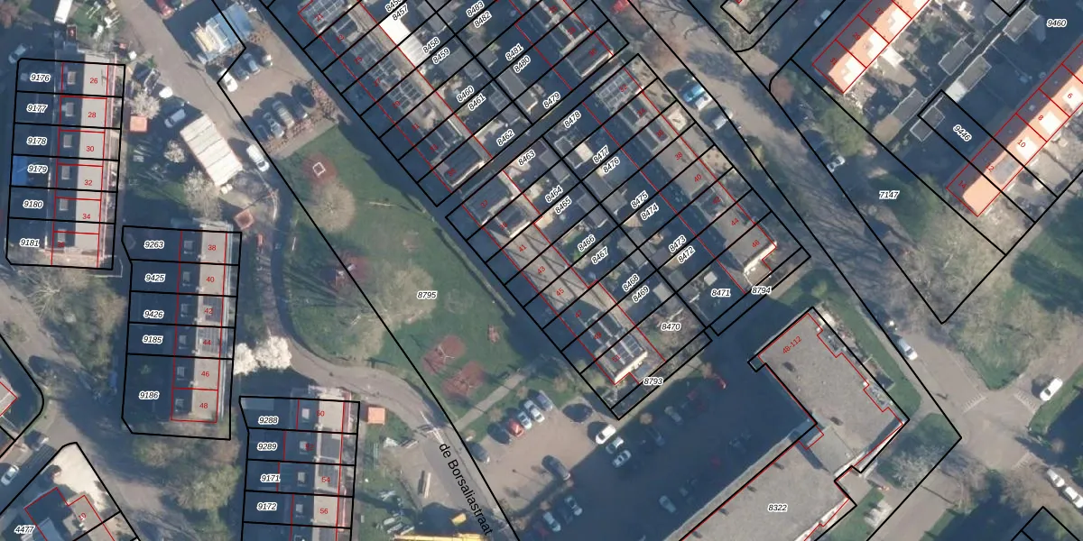 Het perceel waarop de Borsaliastraat 43 staat heeft een oppervlakte van 126 m². Dit is een middelgroot perceel. De perceeloppervlakte wordt geregistreerd door het Kadaster. Gedetailleerde informatie over de maten van dit perceel kunt u vinden in het rapport Kadastrale kaart met maatvoering van de Borsaliastraat 43.
