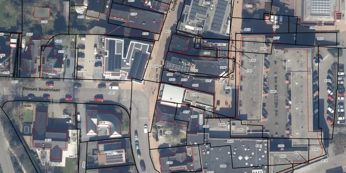 Het perceel waarop De Passage 10 staat heeft een oppervlakte van 335 m². Dit is een groot perceel. De perceeloppervlakte wordt geregistreerd door het Kadaster. Gedetailleerde informatie over de maten van dit perceel kunt u vinden in het rapport Kadastrale kaart met maatvoering van De Passage 10.