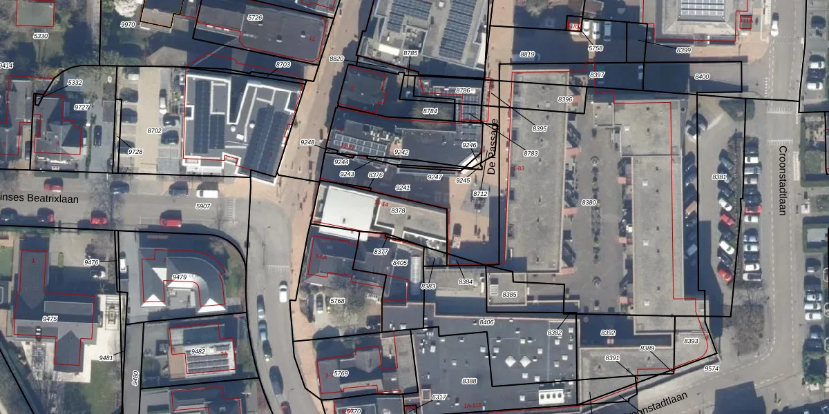 Het perceel waarop De Passage 12 staat heeft een oppervlakte van 335 m². Dit is een groot perceel. De perceeloppervlakte wordt geregistreerd door het Kadaster. Gedetailleerde informatie over de maten van dit perceel kunt u vinden in het rapport Kadastrale kaart met maatvoering van De Passage 12.