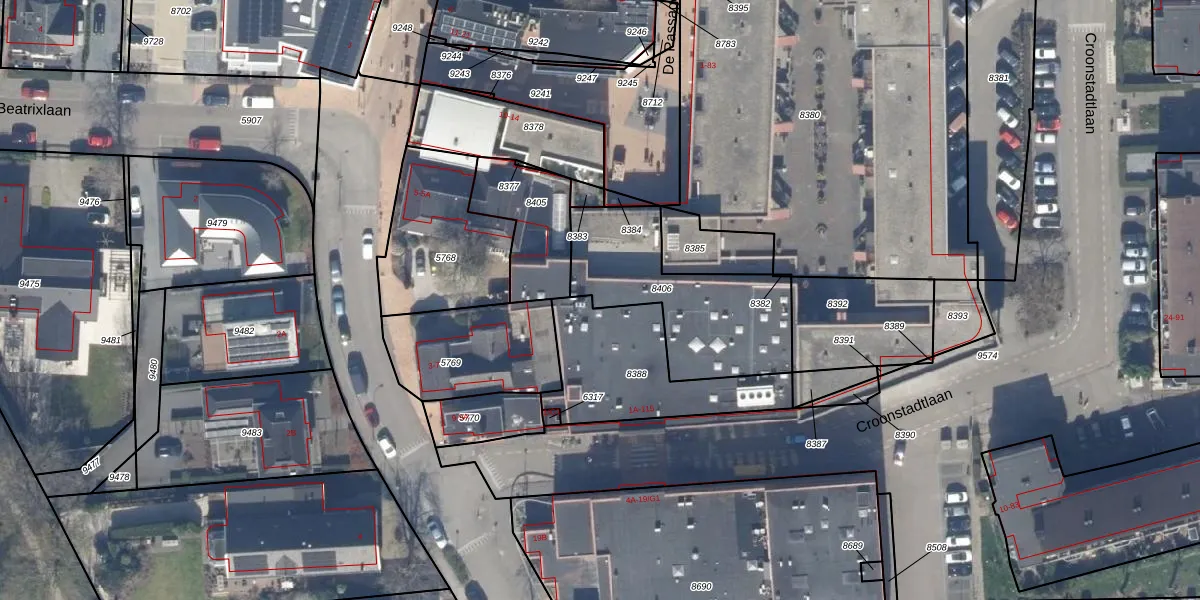 Het perceel waarop De Passage 18 staat heeft een oppervlakte van 605 m². Dit is een groot perceel. De perceeloppervlakte wordt geregistreerd door het Kadaster. Gedetailleerde informatie over de maten van dit perceel kunt u vinden in het rapport Kadastrale kaart met maatvoering van De Passage 18.