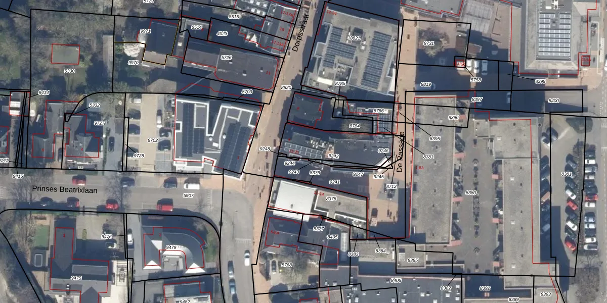 Het perceel waarop De Passage 19 staat heeft een oppervlakte van 378 m². Dit is een groot perceel. De perceeloppervlakte wordt geregistreerd door het Kadaster. Gedetailleerde informatie over de maten van dit perceel kunt u vinden in het rapport Kadastrale kaart met maatvoering van De Passage 19.
