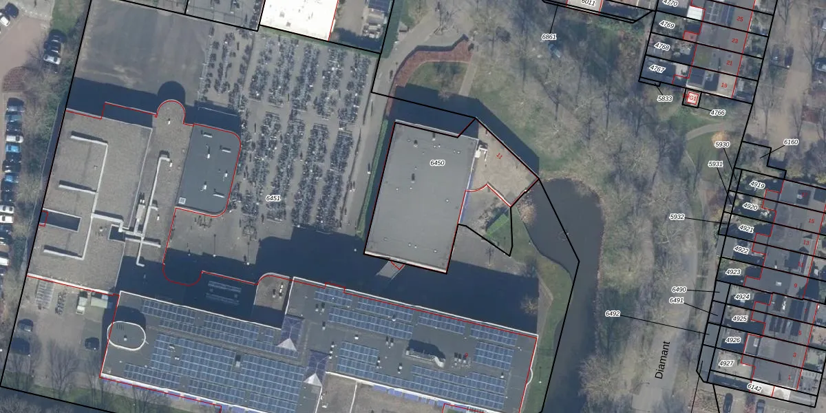 Het perceel waarop Diamant 11 staat heeft een oppervlakte van 999 m². Dit is een groot perceel. De perceeloppervlakte wordt geregistreerd door het Kadaster. Gedetailleerde informatie over de maten van dit perceel kunt u vinden in het rapport Kadastrale kaart met maatvoering van Diamant 11.