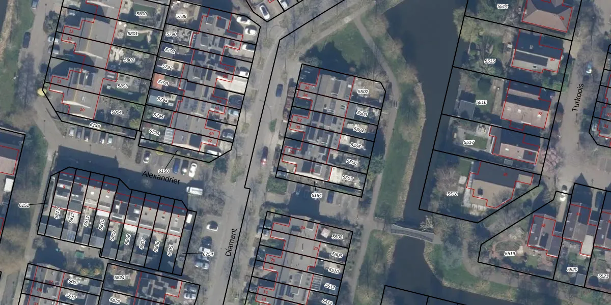 Het perceel waarop Diamant 28 staat heeft een oppervlakte van 157 m². Dit is een middelgroot perceel. De perceeloppervlakte wordt geregistreerd door het Kadaster. Gedetailleerde informatie over de maten van dit perceel kunt u vinden in het rapport Kadastrale kaart met maatvoering van Diamant 28.