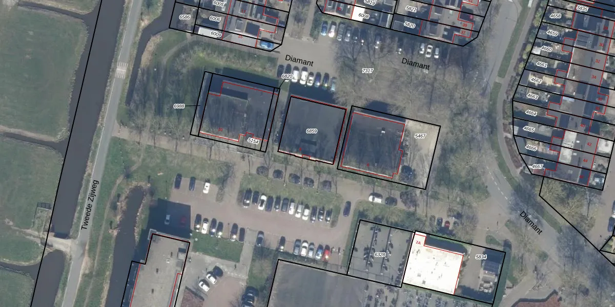 Het perceel waarop Diamant 8 staat heeft een oppervlakte van 348 m². Dit is een groot perceel. De perceeloppervlakte wordt geregistreerd door het Kadaster. Gedetailleerde informatie over de maten van dit perceel kunt u vinden in het rapport Kadastrale kaart met maatvoering van Diamant 8.