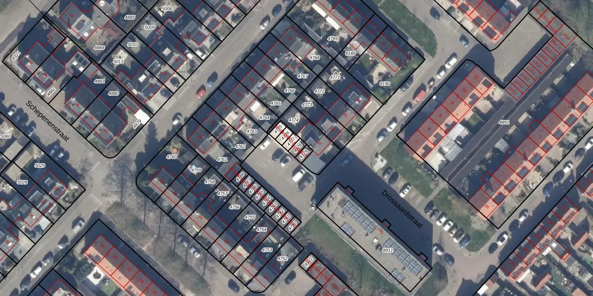Gebruik de zoekbalk of klik op een perceel voor informatie over de adressen binnen dit perceel.