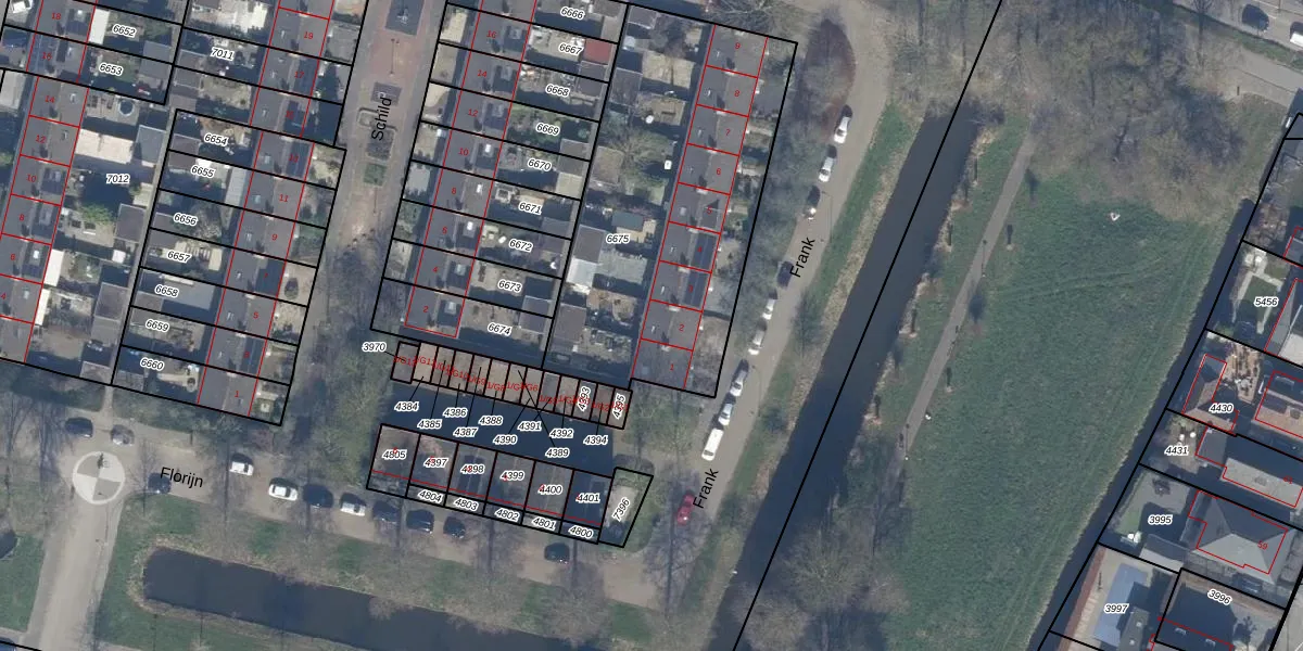 Het perceel waarop Frank 2 staat heeft een oppervlakte van 1530 m². Dit is een zeer groot perceel. De perceeloppervlakte wordt geregistreerd door het Kadaster. Gedetailleerde informatie over de maten van dit perceel kunt u vinden in het rapport Kadastrale kaart met maatvoering van Frank 2.