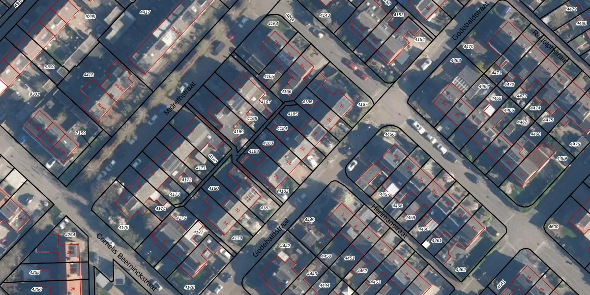 Godebaldstraat 24 is gelegen op kadastraal perceel MDT01C4184. Deze kadastrale aanduiding is uniek en wordt gebruikt door het Kadaster om eigendomsrechten en andere zakelijke rechten vast te leggen. Het perceel maakt onderdeel uit van de kadastrale gemeente Mijdrecht.