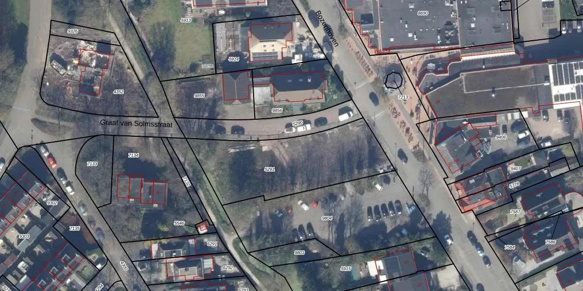 Het perceel waarop Graaf van Solmsstraat 9 staat heeft een oppervlakte van 1240 m². Dit is een zeer groot perceel. De perceeloppervlakte wordt geregistreerd door het Kadaster. Gedetailleerde informatie over de maten van dit perceel kunt u vinden in het rapport Kadastrale kaart met maatvoering van Graaf van Solmsstraat 9.