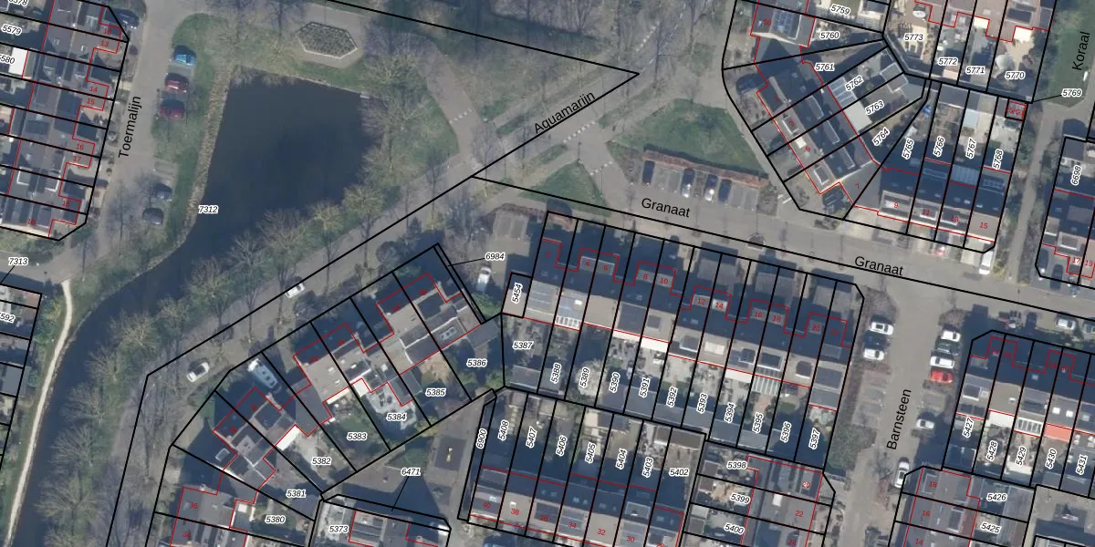Het perceel waarop Granaat 2 staat heeft een oppervlakte van 213 m². Dit is een middelgroot perceel. De perceeloppervlakte wordt geregistreerd door het Kadaster. Gedetailleerde informatie over de maten van dit perceel kunt u vinden in het rapport Kadastrale kaart met maatvoering van Granaat 2.