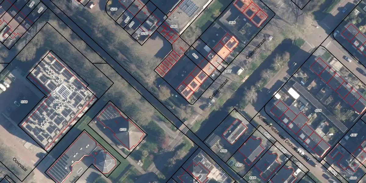 Gravenstraat 7 is gelegen op kadastraal perceel MDT01C9381. Deze kadastrale aanduiding is uniek en wordt gebruikt door het Kadaster om eigendomsrechten en andere zakelijke rechten vast te leggen. Het perceel maakt onderdeel uit van de kadastrale gemeente Mijdrecht.