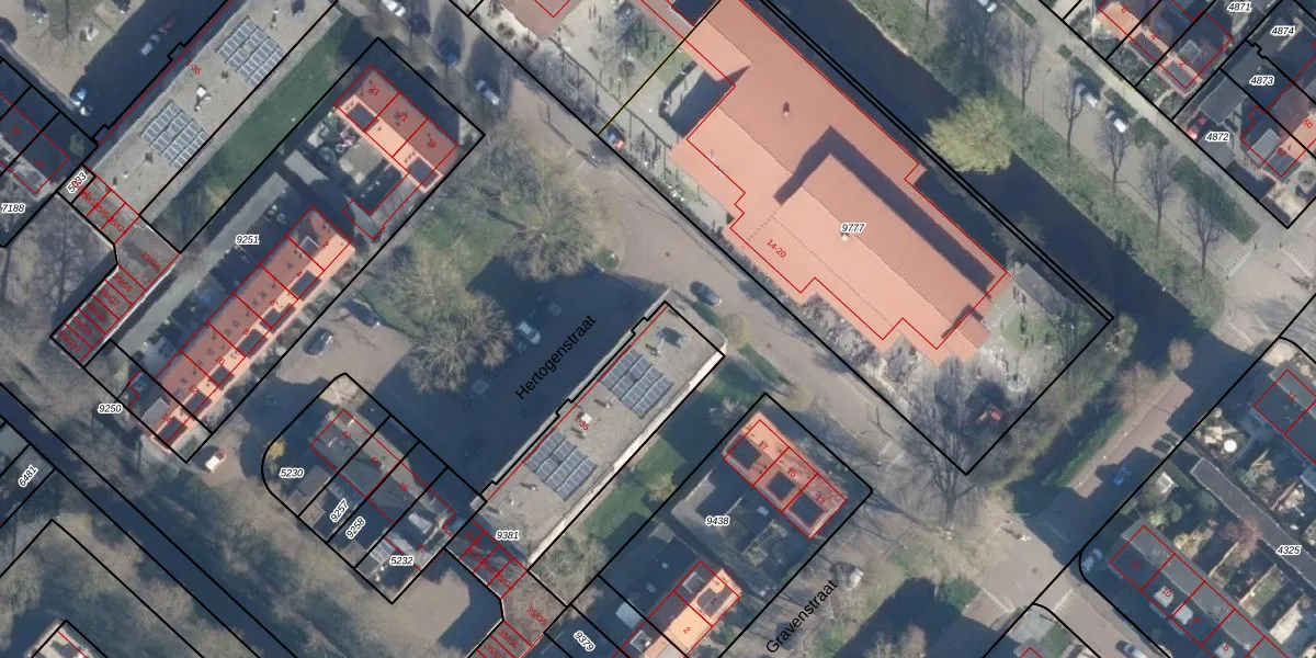 Het perceel waarop Hertogenstraat 1 staat heeft een oppervlakte van 1168 m². Dit is een zeer groot perceel. De perceeloppervlakte wordt geregistreerd door het Kadaster. Gedetailleerde informatie over de maten van dit perceel kunt u vinden in het rapport Kadastrale kaart met maatvoering van Hertogenstraat 1.