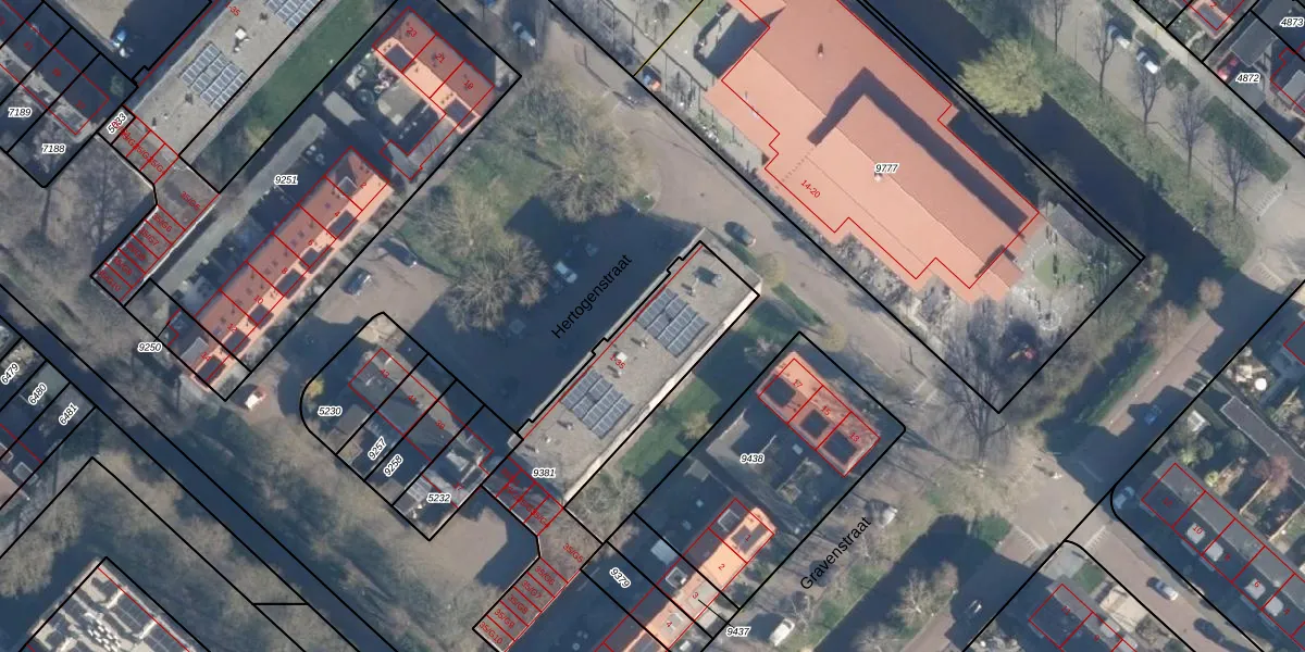 Het perceel waarop Hertogenstraat 1-G2 staat heeft een oppervlakte van 1168 m². Dit is een zeer groot perceel. De perceeloppervlakte wordt geregistreerd door het Kadaster. Gedetailleerde informatie over de maten van dit perceel kunt u vinden in het rapport Kadastrale kaart met maatvoering van Hertogenstraat 1-G2.
