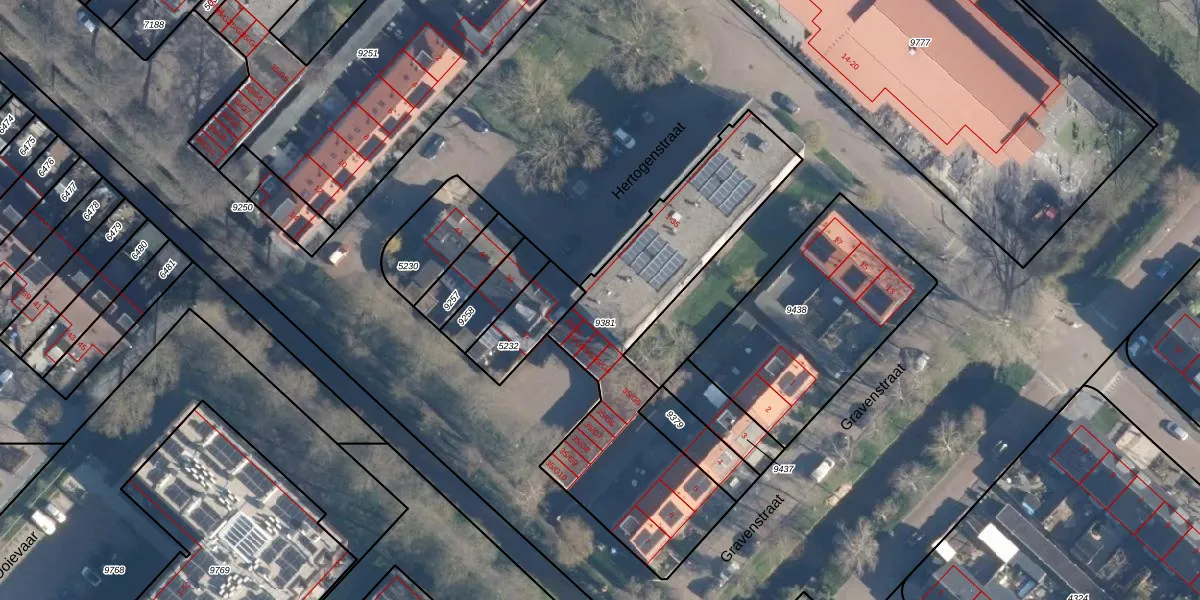 Het perceel waarop Hertogenstraat 33 staat heeft een oppervlakte van 1168 m². Dit is een zeer groot perceel. De perceeloppervlakte wordt geregistreerd door het Kadaster. Gedetailleerde informatie over de maten van dit perceel kunt u vinden in het rapport Kadastrale kaart met maatvoering van Hertogenstraat 33.