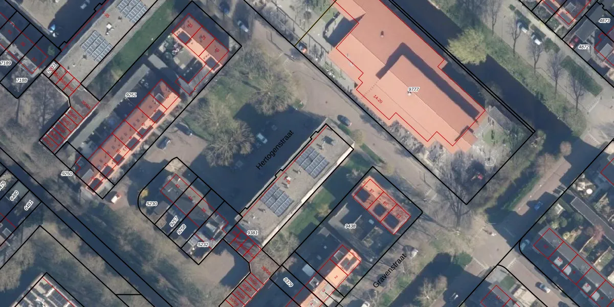 Het perceel waarop Hertogenstraat 7 staat heeft een oppervlakte van 1168 m². Dit is een zeer groot perceel. De perceeloppervlakte wordt geregistreerd door het Kadaster. Gedetailleerde informatie over de maten van dit perceel kunt u vinden in het rapport Kadastrale kaart met maatvoering van Hertogenstraat 7.