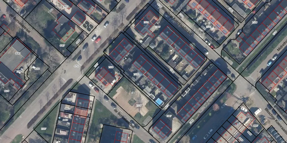 Het adres ligt op het perceel MDT01-C-7120, dat zich in de kadastrale gemeente Mijdrecht bevindt. Het perceel is kleiner dan gemiddeld in Mijdrecht. Het perceel is 1120 m² groot, terwijl het gemiddelde ligt op 3024,87 m². Het kleinste perceel in de kadastrale gemeente is 0 m² groot. De grootste perceeloppervlakte is 25,4 ha. Op het perceel liggen in totaal 9 adressen. De laatste wijziging in het de Basisregistratie Kadaster (BRK) was op 19-09-1997.