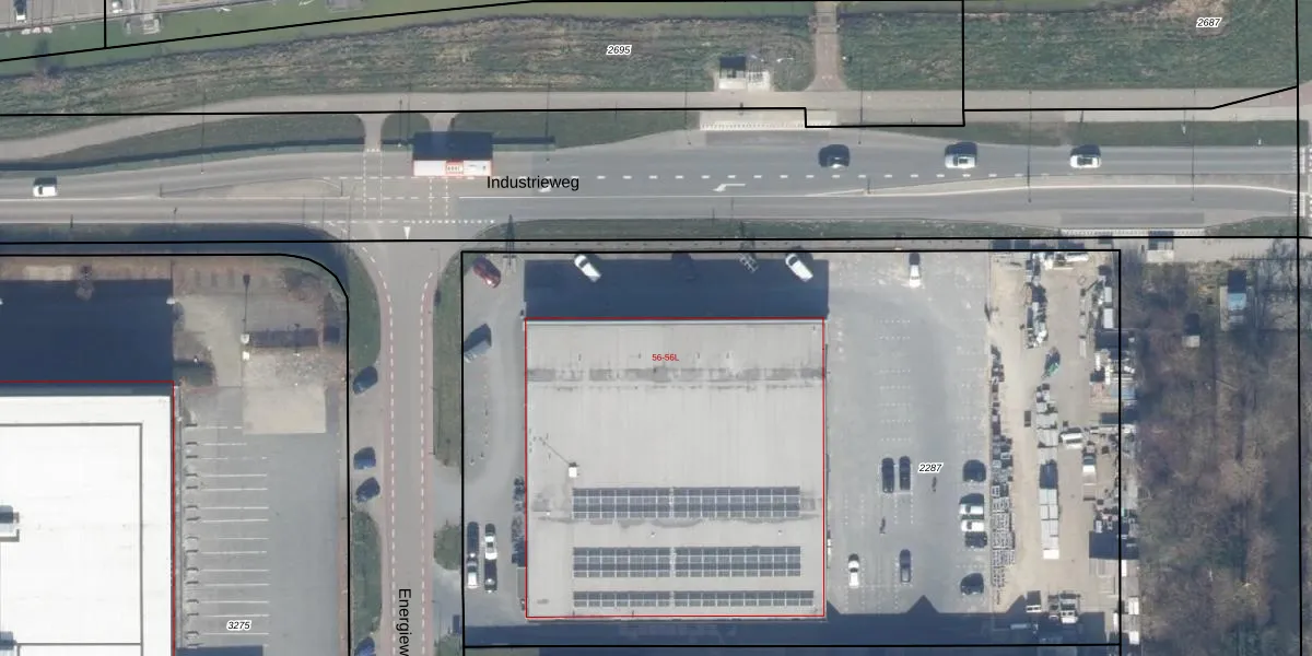 Het perceel waarop Industrieweg 56-G staat heeft een oppervlakte van 6004 m². Dit is een zeer groot perceel. De perceeloppervlakte wordt geregistreerd door het Kadaster. Gedetailleerde informatie over de maten van dit perceel kunt u vinden in het rapport Kadastrale kaart met maatvoering van Industrieweg 56-G.