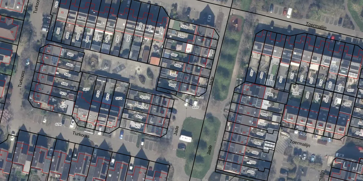 Het perceel waarop Jade 9 staat heeft een oppervlakte van 145 m². Dit is een middelgroot perceel. De perceeloppervlakte wordt geregistreerd door het Kadaster. Gedetailleerde informatie over de maten van dit perceel kunt u vinden in het rapport Kadastrale kaart met maatvoering van Jade 9.