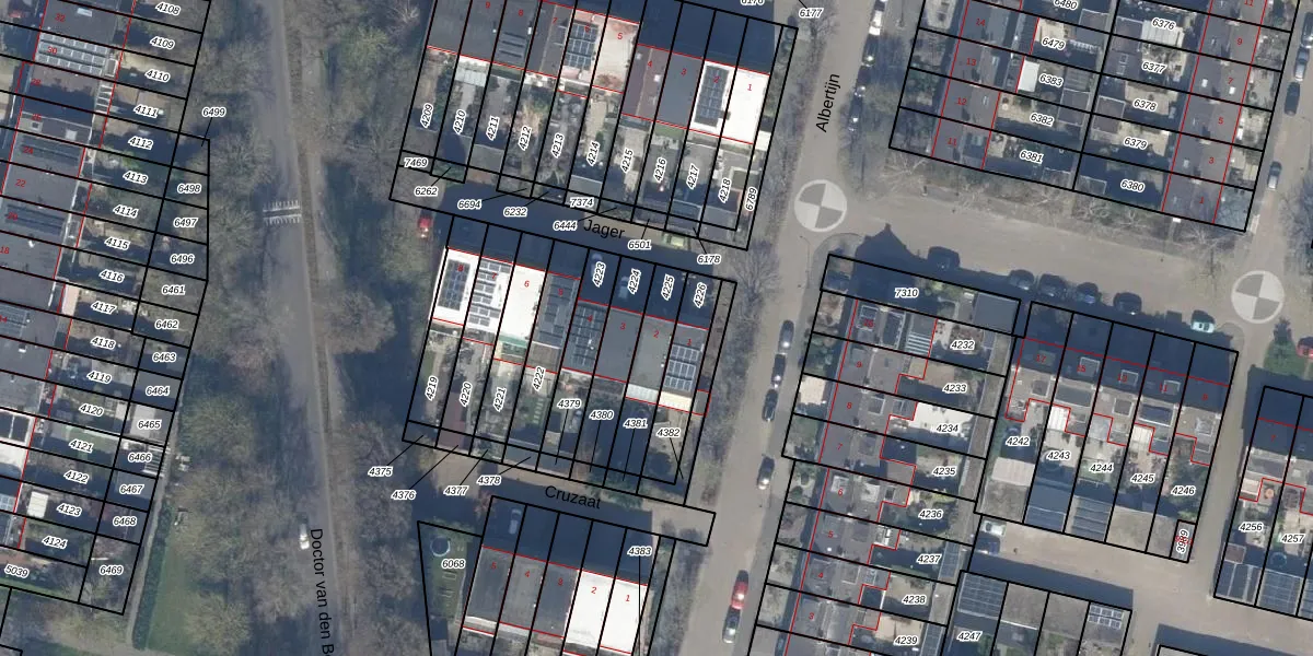 Gebruik de zoekbalk of klik op een perceel voor informatie over de adressen binnen dit perceel.