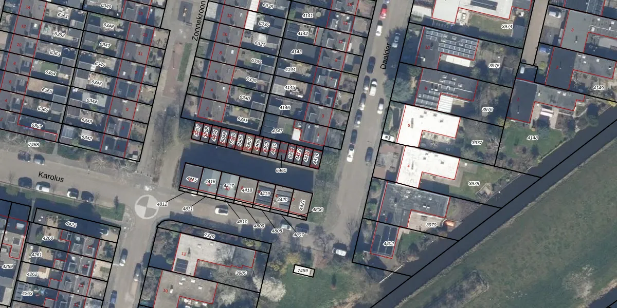Gebruik de zoekbalk of klik op een perceel voor informatie over de adressen binnen dit perceel.