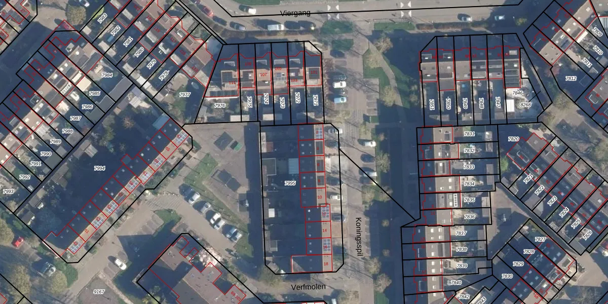 Het perceel waarop Koningsspil 4 staat heeft een oppervlakte van 1245 m². Dit is een zeer groot perceel. De perceeloppervlakte wordt geregistreerd door het Kadaster. Gedetailleerde informatie over de maten van dit perceel kunt u vinden in het rapport Kadastrale kaart met maatvoering van Koningsspil 4.