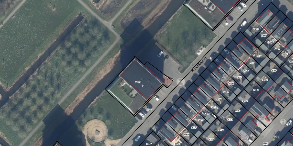 Het perceel waarop Korenbloem 38 staat heeft een oppervlakte van 903 m². Dit is een groot perceel. De perceeloppervlakte wordt geregistreerd door het Kadaster. Gedetailleerde informatie over de maten van dit perceel kunt u vinden in het rapport Kadastrale kaart met maatvoering van Korenbloem 38.
