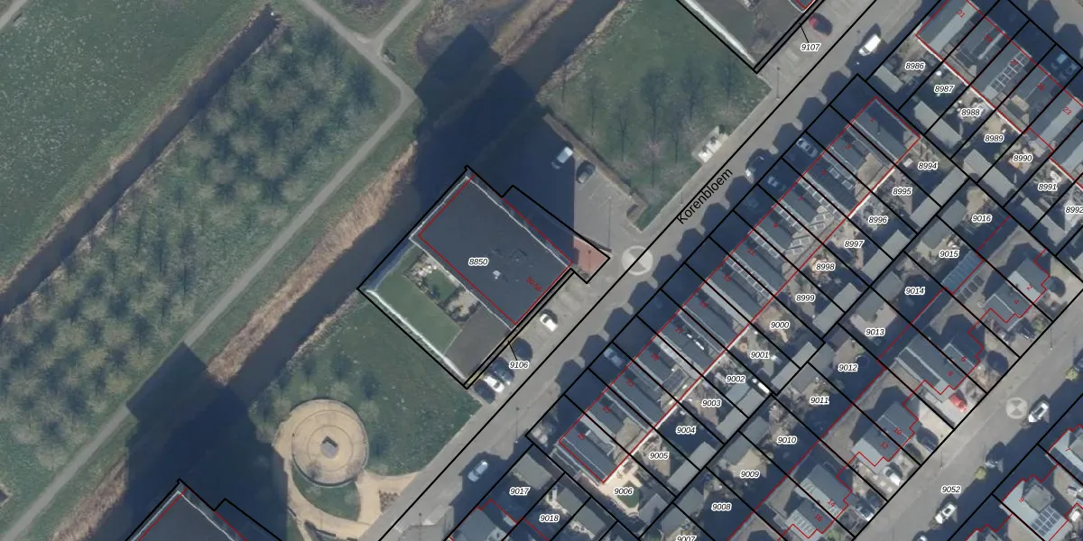 Het perceel waarop Korenbloem 42 staat heeft een oppervlakte van 903 m². Dit is een groot perceel. De perceeloppervlakte wordt geregistreerd door het Kadaster. Gedetailleerde informatie over de maten van dit perceel kunt u vinden in het rapport Kadastrale kaart met maatvoering van Korenbloem 42.