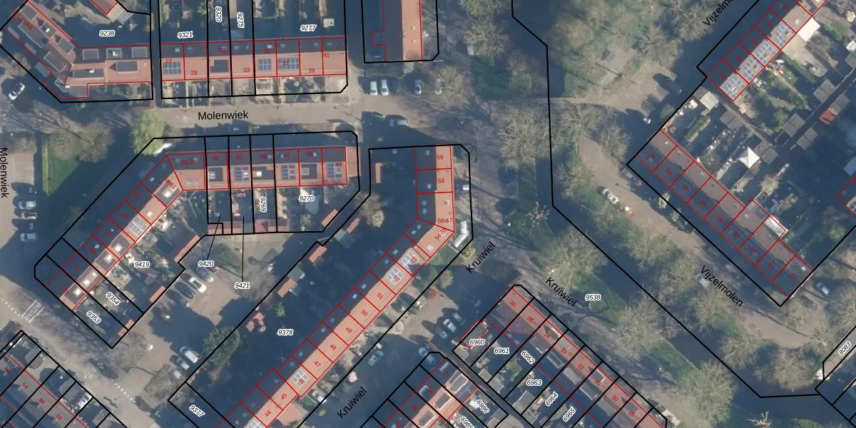 Kruiwiel 57 is gelegen op kadastraal perceel MDT01C9378. Deze kadastrale aanduiding is uniek en wordt gebruikt door het Kadaster om eigendomsrechten en andere zakelijke rechten vast te leggen. Het perceel maakt onderdeel uit van de kadastrale gemeente Mijdrecht.