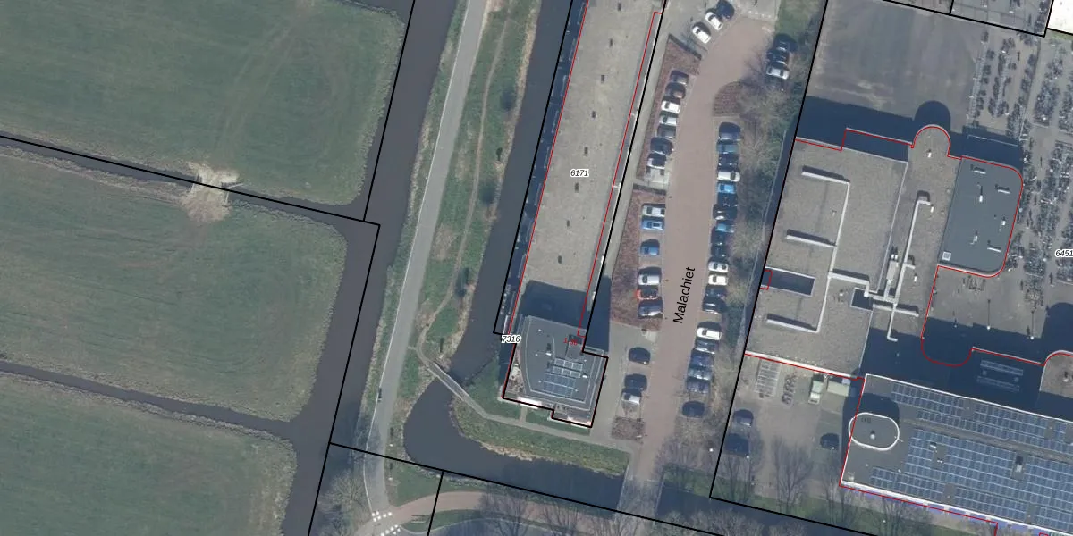 Het perceel waarop Malachiet 25 staat heeft een oppervlakte van 1451 m². Dit is een zeer groot perceel. De perceeloppervlakte wordt geregistreerd door het Kadaster. Gedetailleerde informatie over de maten van dit perceel kunt u vinden in het rapport Kadastrale kaart met maatvoering van Malachiet 25.