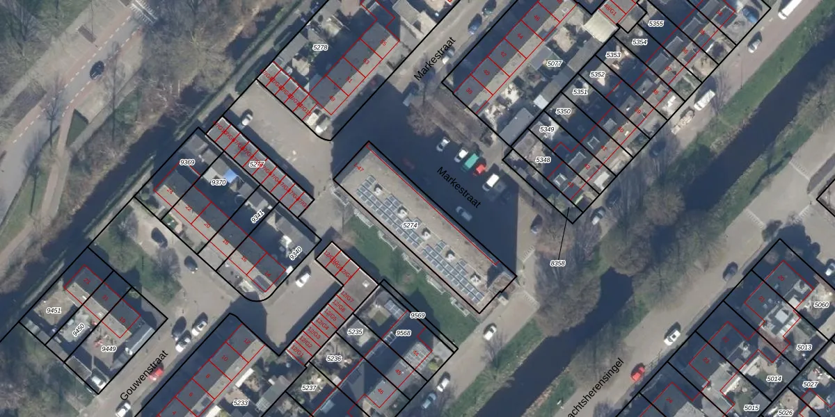 Het perceel waarop Markestraat 19 staat heeft een oppervlakte van 599 m². Dit is een groot perceel. De perceeloppervlakte wordt geregistreerd door het Kadaster. Gedetailleerde informatie over de maten van dit perceel kunt u vinden in het rapport Kadastrale kaart met maatvoering van Markestraat 19.