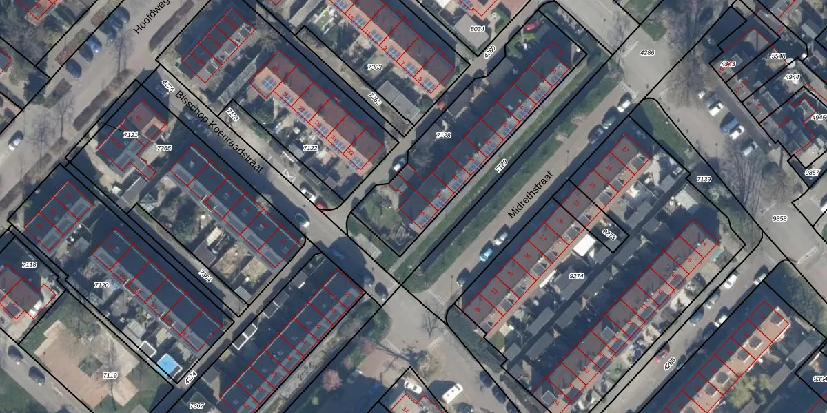 Midrethstraat 36 is gelegen op kadastraal perceel MDT01C7128. Deze kadastrale aanduiding is uniek en wordt gebruikt door het Kadaster om eigendomsrechten en andere zakelijke rechten vast te leggen. Het perceel maakt onderdeel uit van de kadastrale gemeente Mijdrecht.