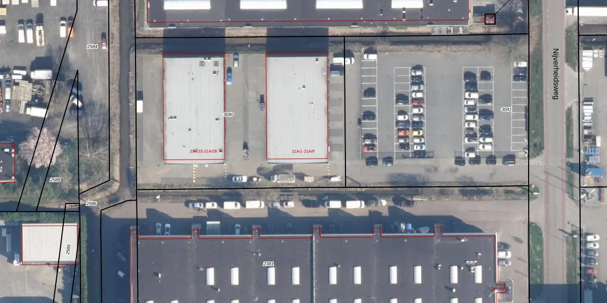 Nijverheidsweg 21-A-1 is gelegen op kadastraal perceel MDT01B3040. Deze kadastrale aanduiding is uniek en wordt gebruikt door het Kadaster om eigendomsrechten en andere zakelijke rechten vast te leggen. Het perceel maakt onderdeel uit van de kadastrale gemeente Mijdrecht.